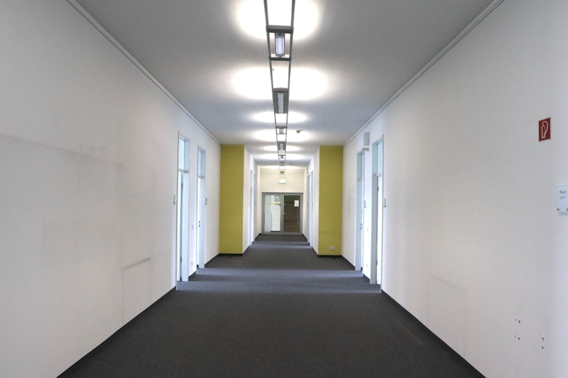 Durch die flexible Raumaufteilung – nichttragende Wände können bei Bedarf mit geringem Aufwand versetzt werden – lässt sich der Grundriss optimal an die individuellen Anforderungen Ihres Unternehmens anpassen.