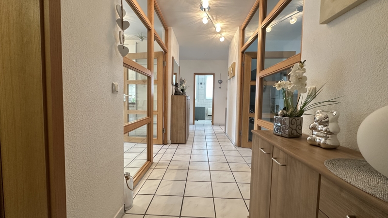 Die Wohnung präsentiert sich mit einer stilvollen Kombination aus weißen Bodenfliesen und hochwertigem Echtholzparkett, die ein helles und gepflegtes Wohnambiente schaffen. Für wohlige Wärme sorgt eine moderne Elektrofußbodenheizung, die nicht nur energieeffizient arbeitet, sondern auch ein angenehmes Raumklima gewährleistet.