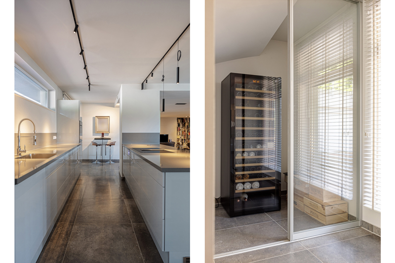 Die hochwertige Einbauküche fügt sich perfekt in dieses Wohnensemble ein. Modern, funktional, stilvoll – und mit einem vorgesehenen Platz für einen Weinkühlschrank – wird sie zum Mittelpunkt geselliger Abende und kulinarischer Kreativität.